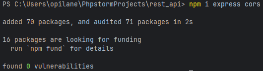 • Paigaldasin vajalikud paketid: npm i express cors.