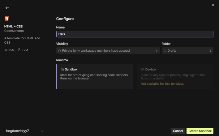 1: Loome proekti CodeSandboxis