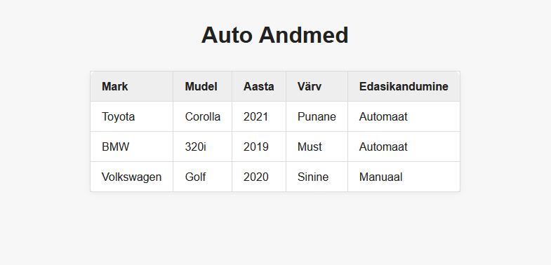 <h1>Auto Andmed</h1>